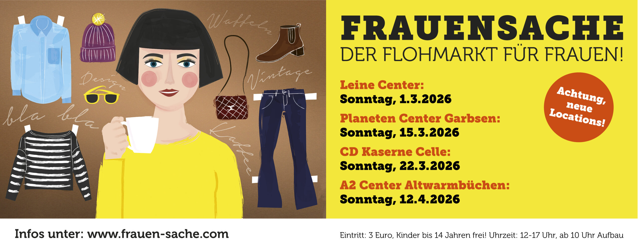 Dann seid Ihr bei FrauenSache genau richtig. Im Shopping-Center könnt Ihr in tollem Ambiente nach Herzenslust nach neuen Lieblingsteilen stöbern und bleibt bei jedem Wetter trocken und warm. Wir laden Euch zu FrauenSache ein – zum Bummeln mit Freundinnen, lecker Kaffeetrinken, Anprobieren, Quatschen oder einfach nur Wohlfühlen! Zahlreiche Anbieterinnen mit außergewöhnlichen Sachen sorgen dafür, dass jede nach Herzenslust ihre Shoppinggelüste stillen kann.