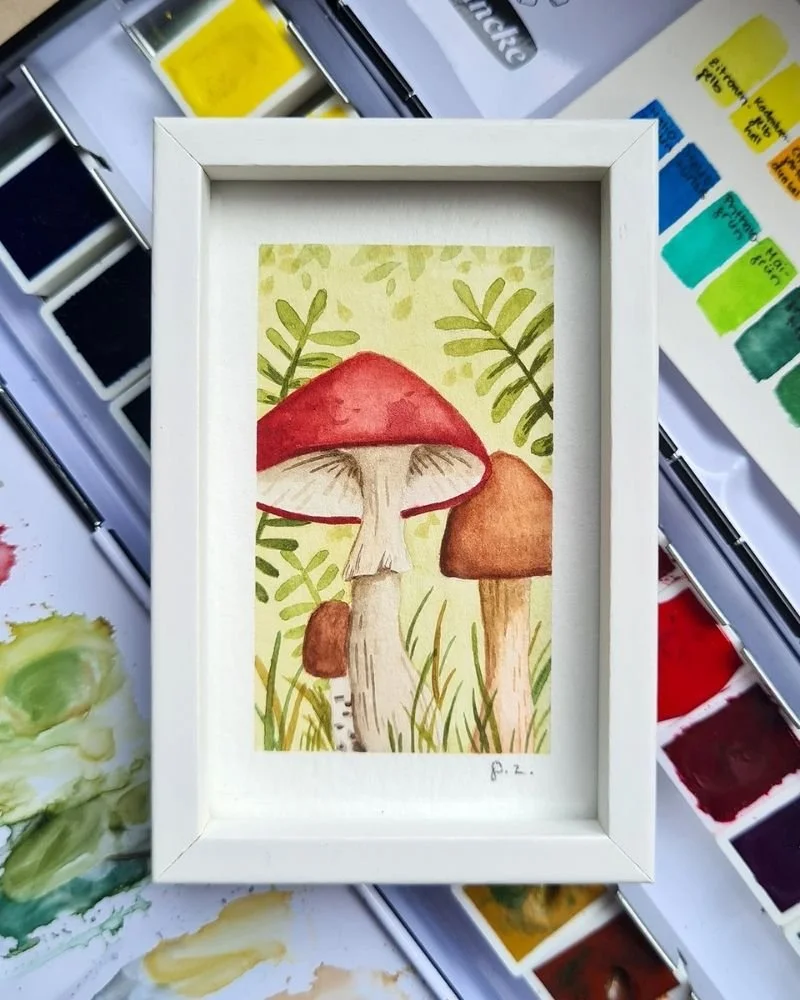 Miniatur-Aquarelle, Tierportraits und (Live-)Illustration. Alles mühevoll und präzise handgemalt, mit großer Liebe für Details.