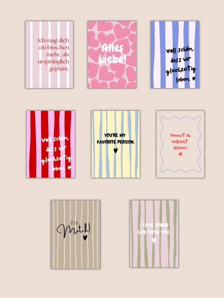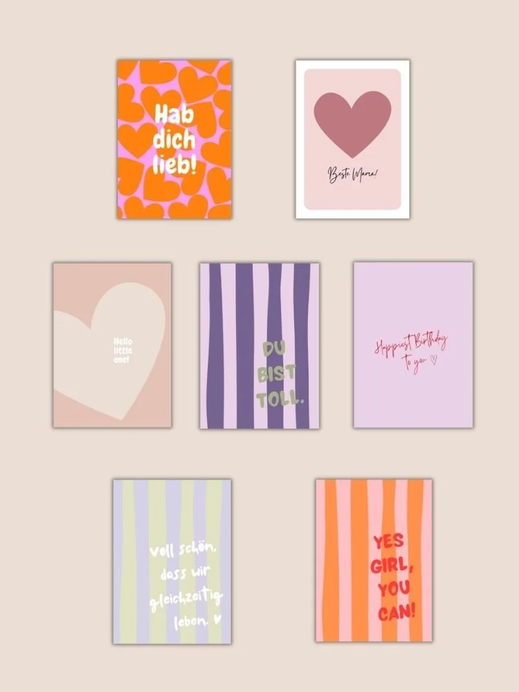 Moderne Prints und Postkarten mit emotionalen Sprüchen, die Farbe und positive Energie in jedes Zuhause bringen. Inspiriert vom Trend Dopamin Decor verbinden die Designs lebendige Farben mit klarer, eleganter Gestaltung.